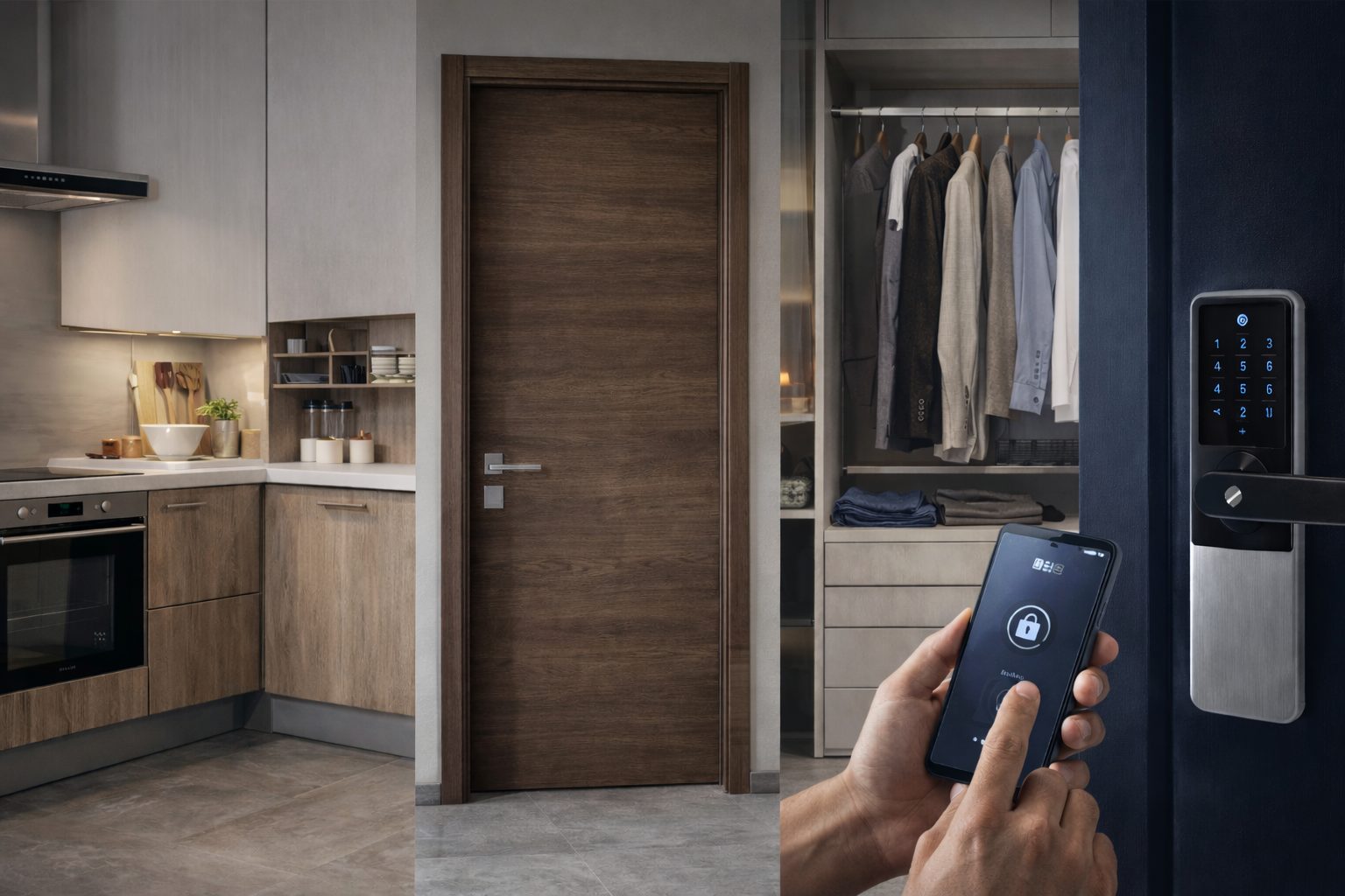 Que vous rénoviez une cuisine, modernisiez vos portes intérieures, optimisiez votre dressing ou passiez à une serrure connectée, nous vous proposons des solutions adaptées à votre espace et à votre budget.
